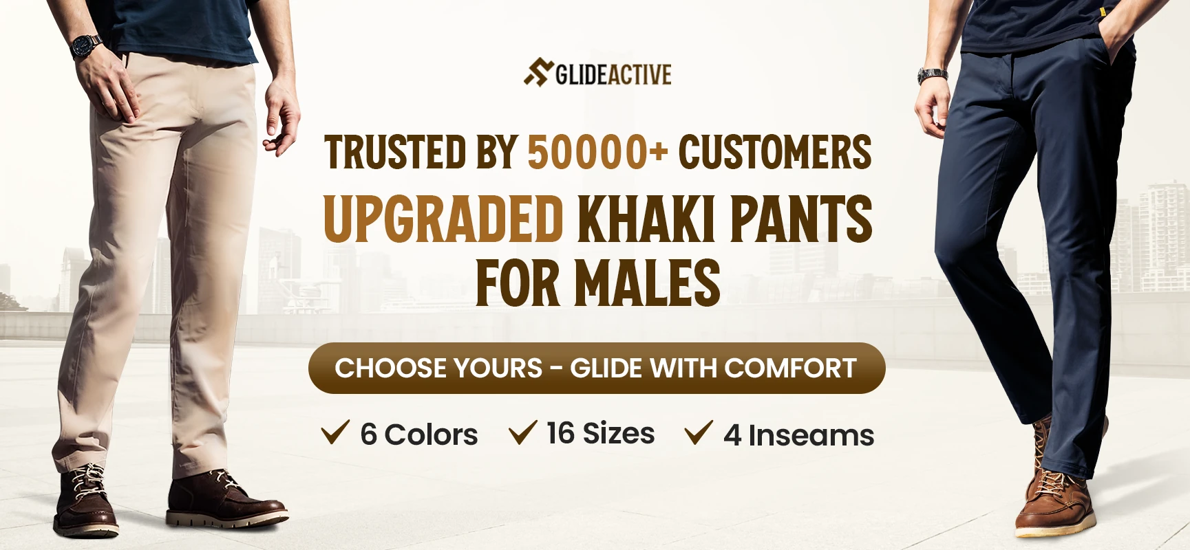 GlideActive - Men's Active Khaki Pants With Expandable Waistband