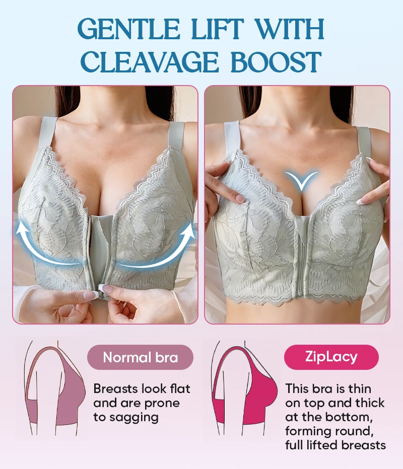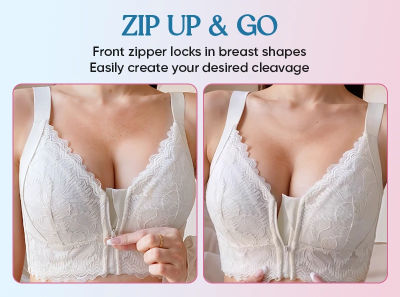 Product Label: ZipLacy - Front Zip Wireless Lace Bra